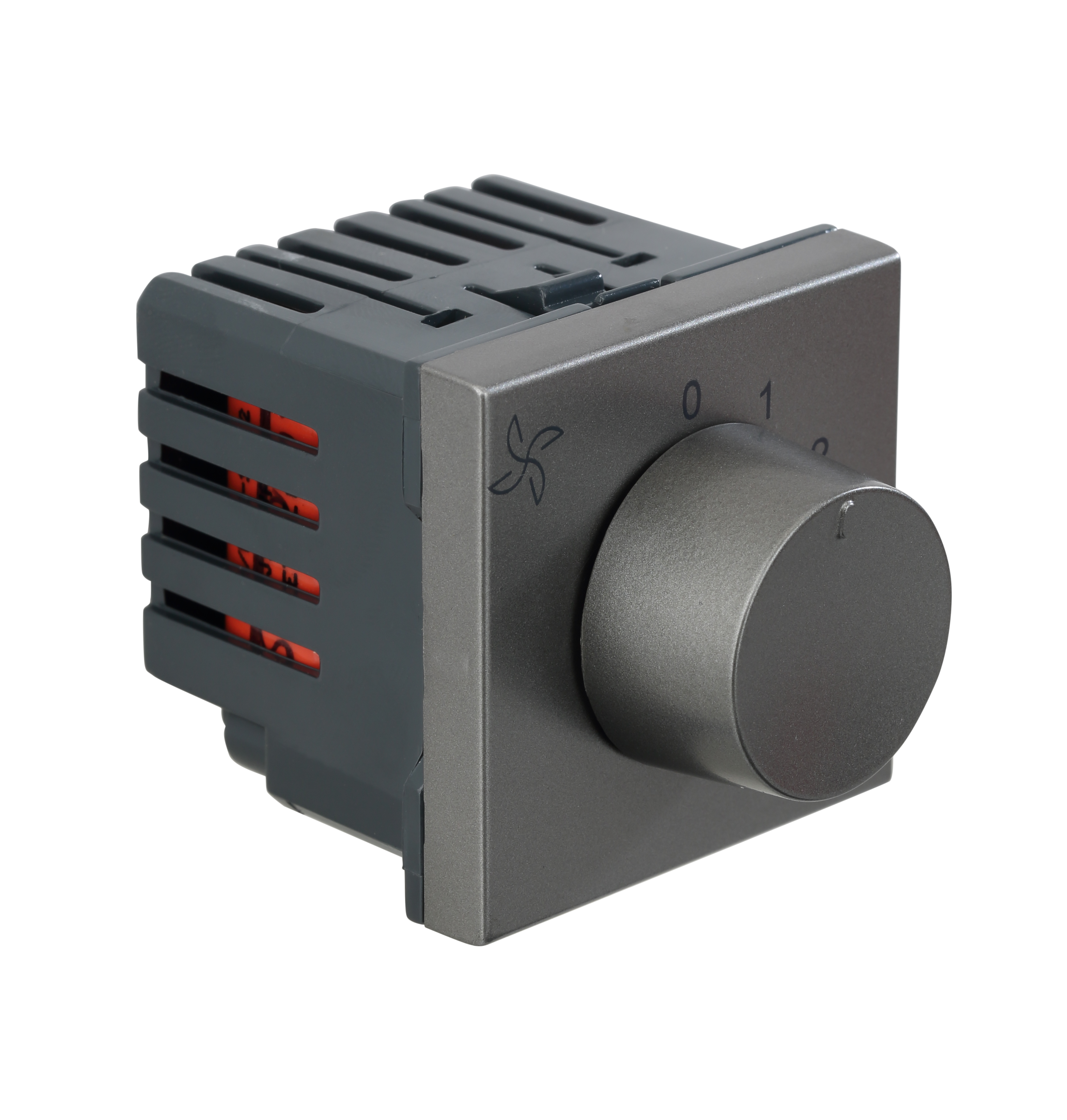 Regulator.Fan Regulator.Modular Regulator.For Energy Saving Fans Connection with Wire Knob Operated 5 Steps Polycarbonate Material 2 years warranty provided by the manufacturer from date of purchase Flexible clip on mechanism Flush and Surface Mounting.
