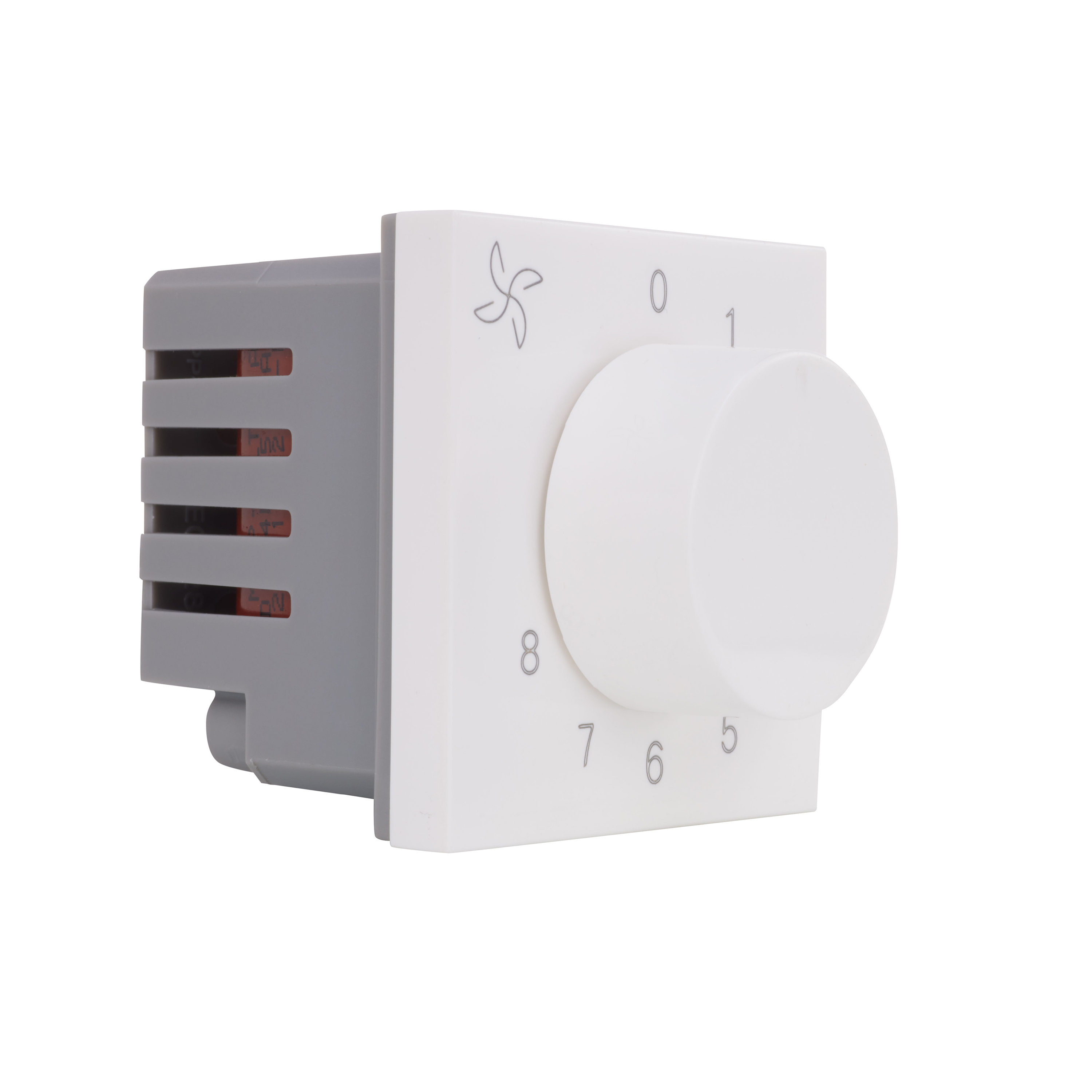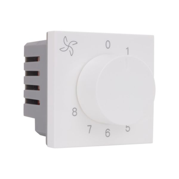 Regulator.Fan Regulator.Modular Regulator.Fan Step Regulator Easy installation and removal of the mechanism on the support frame thanks to the new generation of plastic hooking system Top Marking - Assisting electrician to install product properly High Grade Polycarbonate material Screw with Flexible Wire Flexible clip on mechanism 2 years warranty provided by the manufacturer from date of purchase Flush and Surface Mounting Knob Operated in clockwise direction to increase the speed..