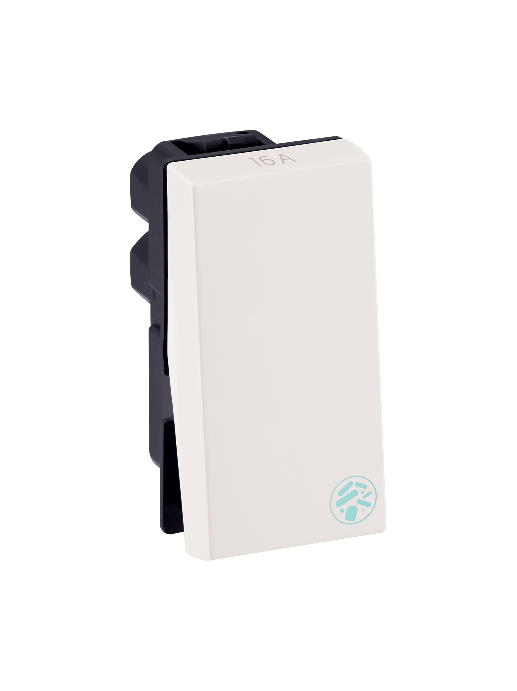Anti-Bacterial switch.16A Anti-Bacterial Switch Arrow showing the correct orientation of the mechanism The latest IS 3854:1997 Fully shrouded internal mechanism under the rocker preventing visibility of sparks 10 years warranty provided by the manufacturer from date of purchase Captive 'never to loose screws' Tunnel terminal preventing screwdrivers from slipping Laser marking on mechanisms.